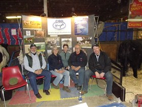 Pierre Mallieu, Secretary of the International Belgian Blue Association, left, Erica Miller, Marie Goubau, Ken Miller and Sam Dunlop manage the Association Stand for the whole week. |